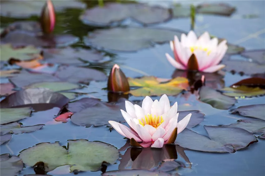 Leitungen für Strom, Gas oder Wasser sollten auf gar keinen Fall unter einem Gartenteich verlaufen, weil dies bei Reparaturarbeiten dann zu Problemen führen könnte. Bäume und Sträucher mit flachen Wurzeln sollten nicht in unmittelbarer Nähe eines Gartenteichs stehen. Speziell die harten Bambus-Rhizome könnten ansonsten die Teichfolie ohne weiteres zerstören. Durch das abfallende Laub sollten Bäume grundsätzlich östlich vom Gartenteich gepflanzt werden. Denn ansonsten hat man nur unnötig Mehrarbeit. Die Form eines Gartenteichs spielt auch eine entscheidende Rolle und sollte sich an die restlichen Formen des Gartens anschmiegen. Sind im Garten eher geschwungene Formen vorhanden, empfiehlt sich eine dementsprechende Form beim Teich. Ist der Garten aber eher architektonisch mit klaren Linien gestaltet, empfehlen sich elliptische, kreisrunde oder eckige Formen. Generell wirken größere Gartenteiche schöner und strahlen mehr Ruhe aus. Zudem ist das ökologische Gleichgewicht bei größeren Gartenteichen schneller hergestellt, so dass sich der nötige Pflegeaufwand in Grenzen hält. Zu beachten ist auch, dass ab ca. 100 Kubikmeter eine Baugenehmigung fällig ist. Dies wird jedoch von Bundesland zu Bundesland unterschiedlich gehandhabt. Wenn man sich nicht sicher ist, sollte man sich unbedingt vor dem Anlegen erkundigen. Gartenteiche, die mit einem fertigen Kunststoffbecken ausgelegt sind, sind auch für Ungeübte leicht zu realisieren. Diese Art von Gartenteich muss allerdings spätestens alle fünf Jahre generalüberholt werden, weil aufgrund der Wasserqualität und der Größe der Faulschlamm entfernt werden muss.